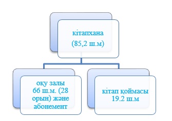 Абонемент пен оқу залы бірге орналасқан, кітап қоймасына бөлек орын қарастырылған. Оқу залы 28 орынға есептелген. Кітапхана талапқа сай толық жаңартылған.